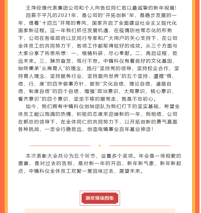 中鏡科儀2021年度表彰大會暨2022年新年聯歡會圓滿舉辦!