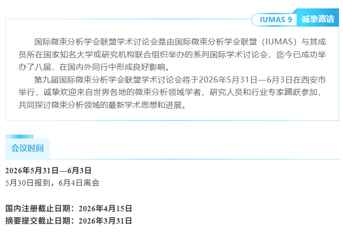 【行業會議】第九屆國際微束分析學會聯盟學術討論會(IUMAS 9)· 第二輪通知