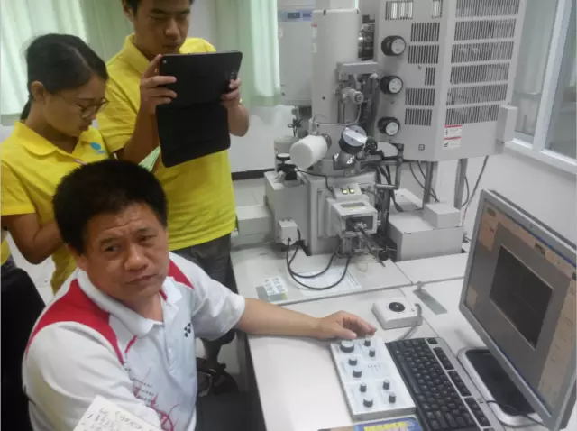 李紀標老師給同學們講解了透射電鏡和掃描電鏡基本操作,納米粉末樣品制備以及能譜分析,并親自對每個學生一一指導。李老師的敬業精神和治學態度,給同學們留下了深刻的印象。