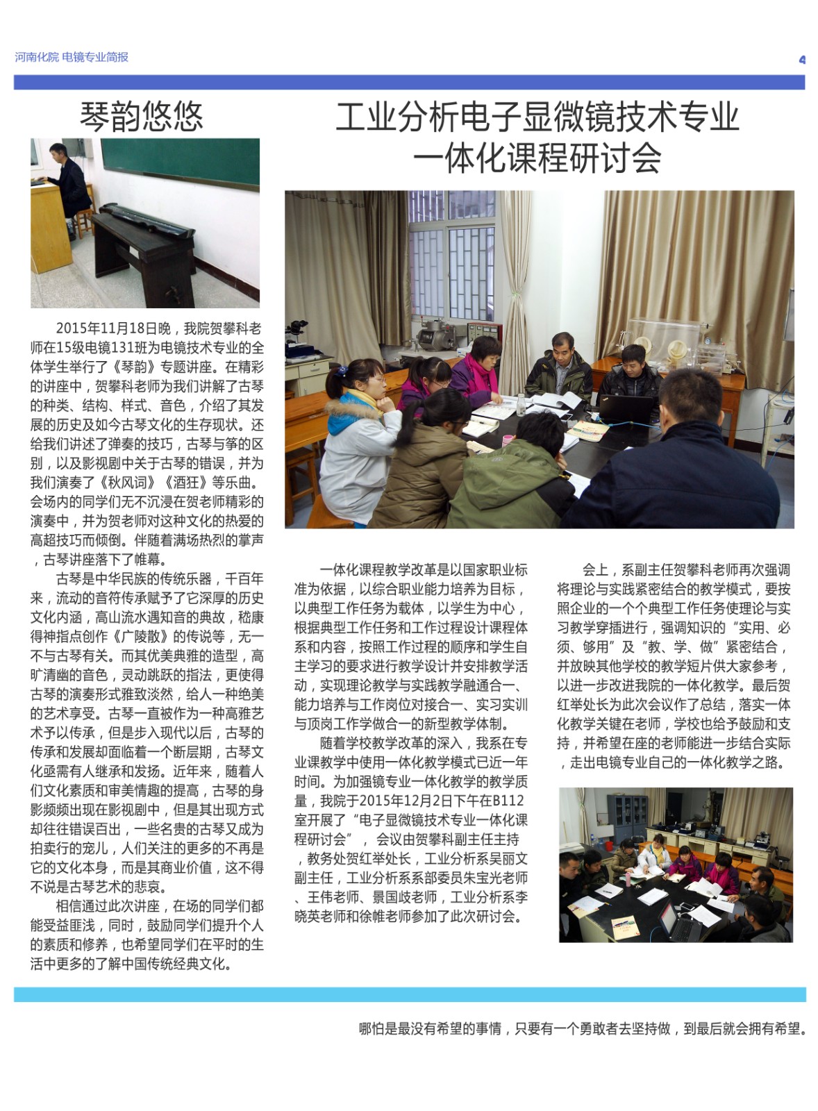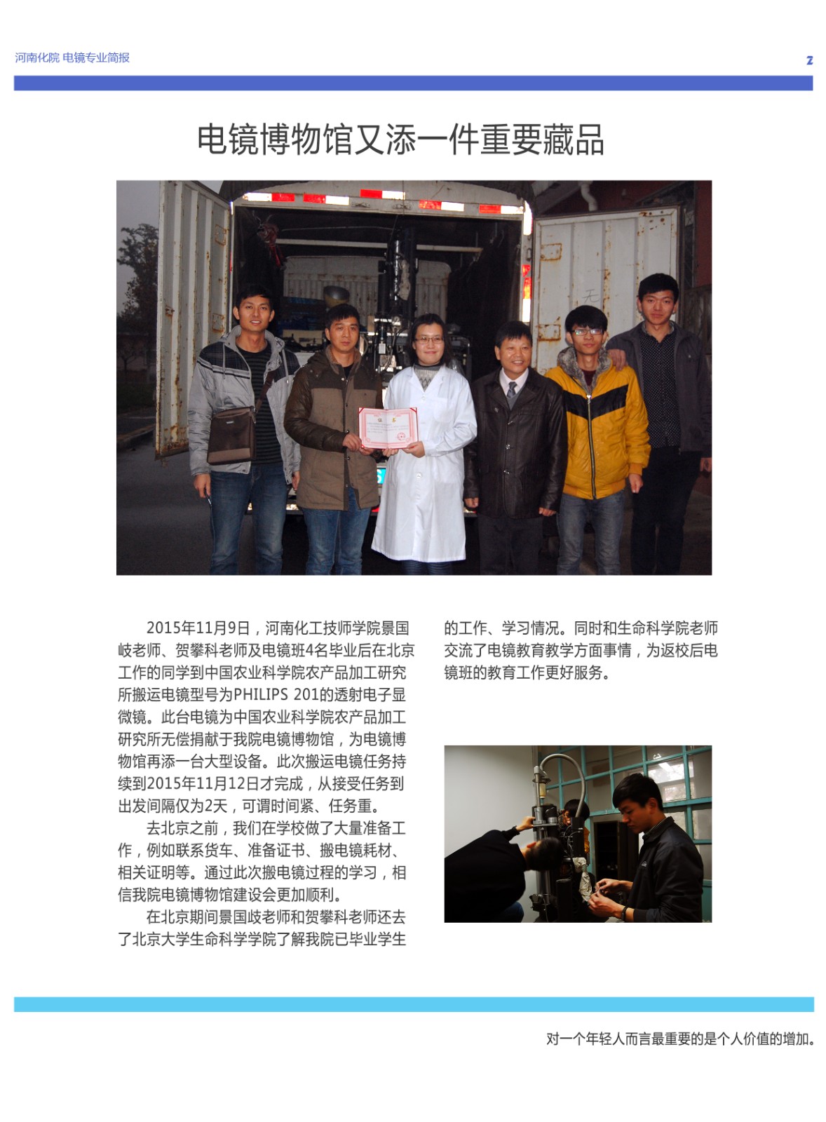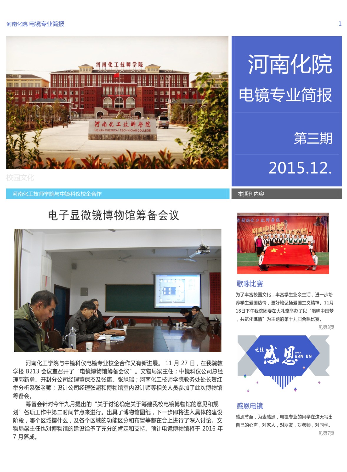中鏡科儀與河南化工技師學(xué)院校企合作電鏡專業(yè)簡報2015年12月第三期