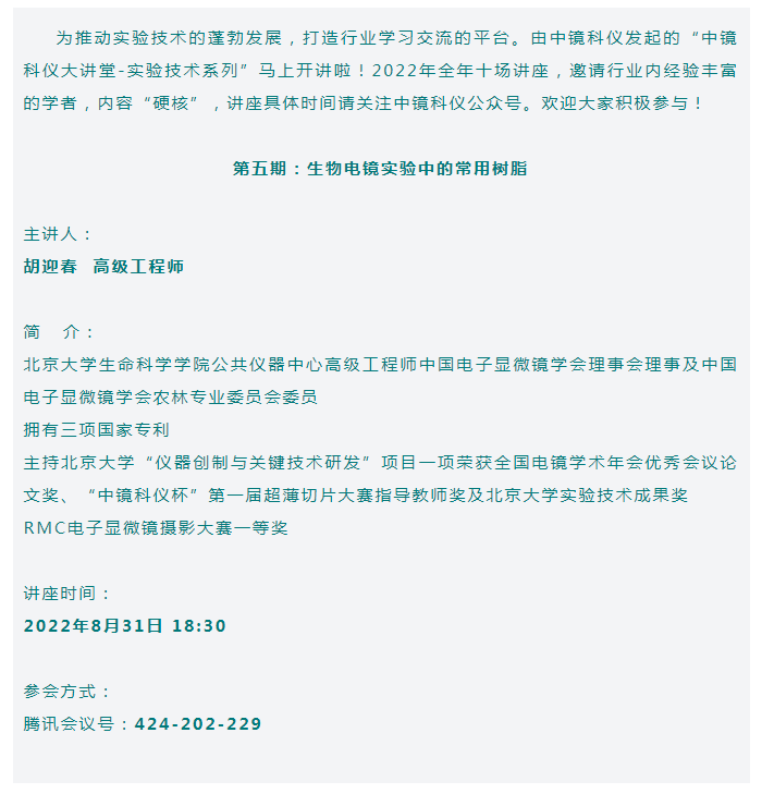 【行業(yè)會議】中鏡科儀大講堂-實驗技術系列(第五期)