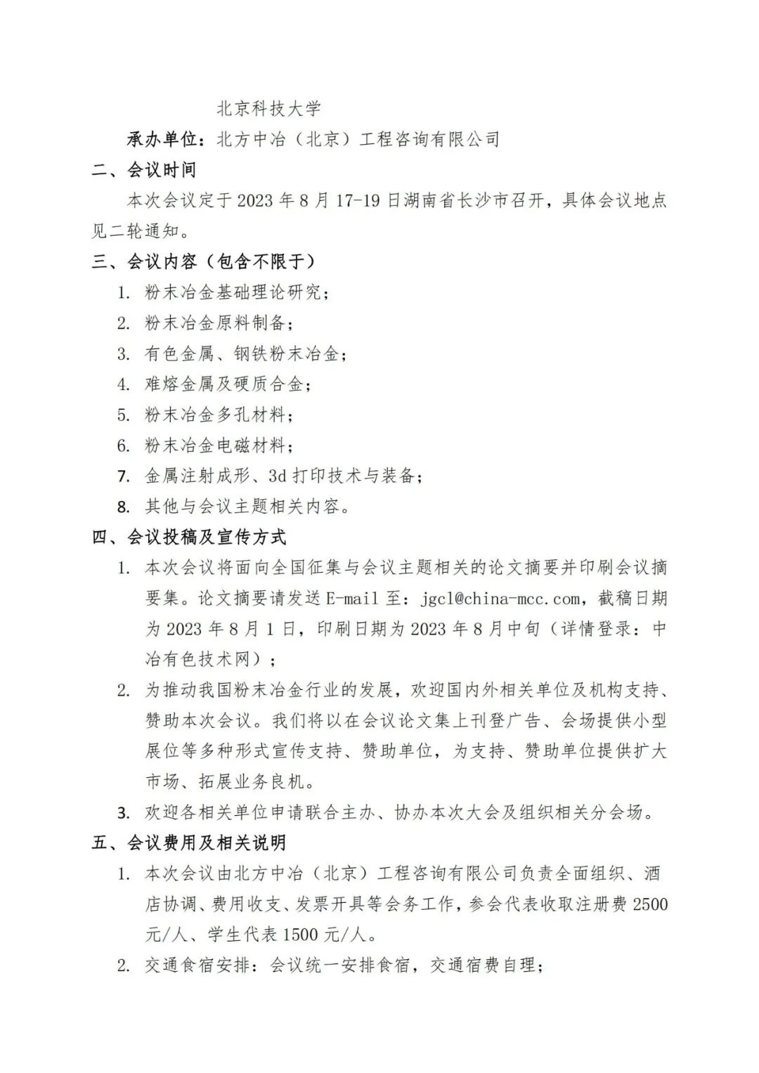 【行業會議】2023先進粉末治金材料與技術交流會通知