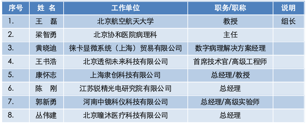 《病理切片掃描儀通用技術規范》標準工作組