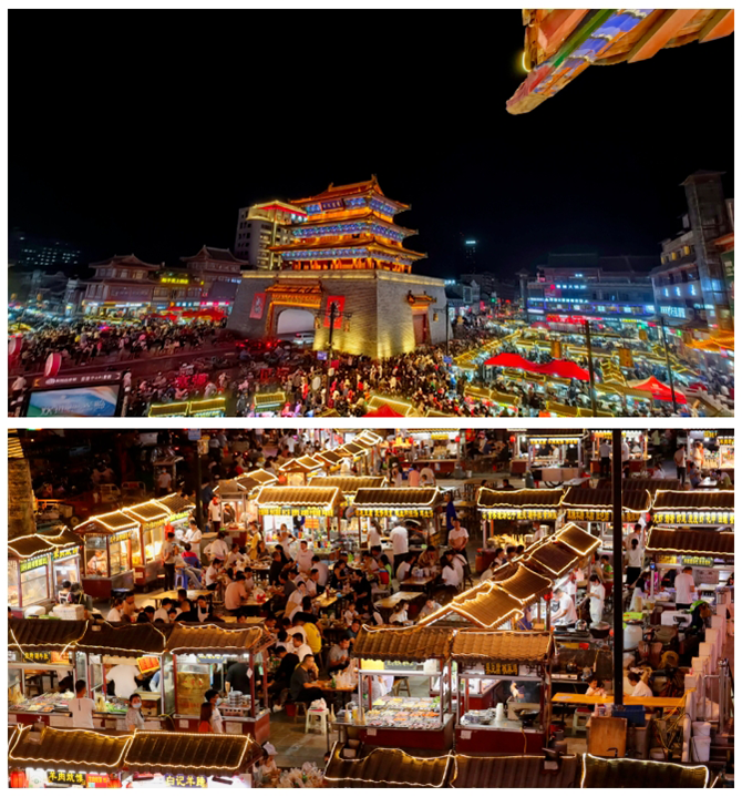 開封市鼓樓特色文化街區(qū),主要由鼓樓夜市、書店街夜市及周邊商業(yè)區(qū)組成,是以“文化+商業(yè)+旅游”為體驗休閑的特色商圈,也是開封有名的夜游打卡地。