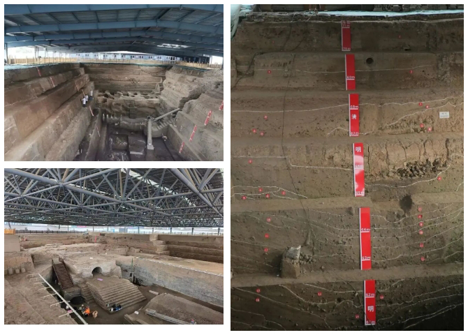開封城地勢低洼、瀕臨黃河,歷次黃河水患造就了開封獨有的“城摞城”奇觀,在地面至地下14米處,自下而上疊壓著戰(zhàn)國、五代、宋、金、元、明、清等不同時期的6座城池遺址,這在世界上也是獨一無二的。作為開封古城興廢無常的見證,州橋及附近汴河遺址已入選“2022年度中國十大考古新發(fā)現(xiàn)”。通過參觀學(xué)習(xí),詳細(xì)了解開封歷史變遷中前世今生的故事,走進(jìn)歷史里的開封。
