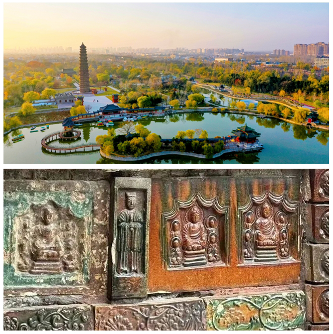 鐵塔公園是國家4A級旅游景區(qū),建于公元1049年,是國家首批公布的重點保護(hù)文物之一,素有“天下第一塔的美稱。園內(nèi)寶塔高55.88米,八角13層,是目前我國最高大、歷史最悠久、保存最完整的一座琉璃磚塔,因此地曾為開寶寺,又稱“開寶寺塔”;又因遍體通砌褐色琉璃磚,渾似鐵鑄,從元代起民間稱其為“鐵塔”。