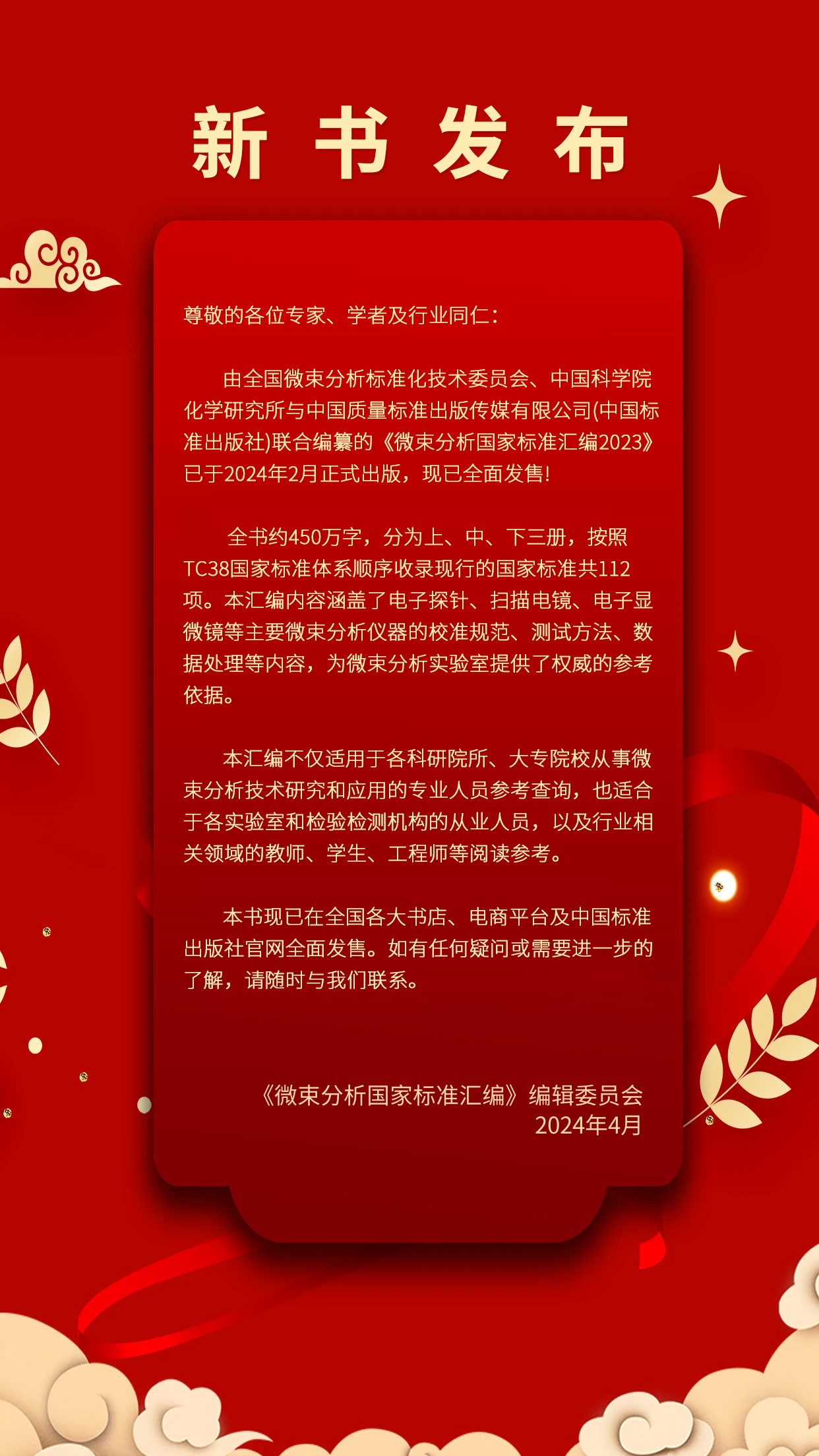 【新聞資訊】新書(shū)發(fā)布|《微束分析國(guó)家標(biāo)準(zhǔn)匯編 2023》正式發(fā)售!