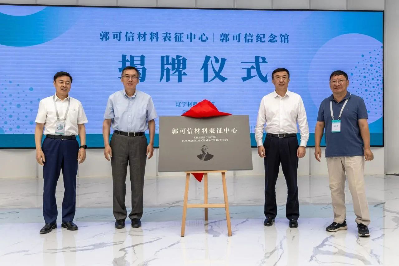 遼寧材料實(shí)驗(yàn)室理事會(huì)理事長王健、遼寧材料實(shí)驗(yàn)室主任盧柯院士、北京大學(xué)彭練矛院士、北京科技大學(xué)毛新平院士為郭可信材料表征中心揭牌。